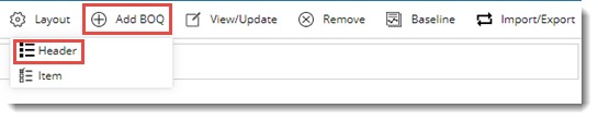 Figure: Adding BOQ Header