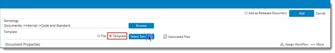 Add as Released Document: If the checkbox next to this option is selected, document will be added as a released document.