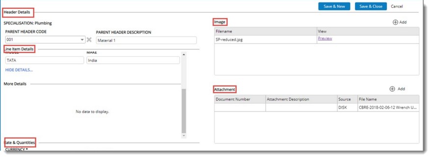Select the code from a drop-down list. Headers created for a specialisation is displayed in the list. |