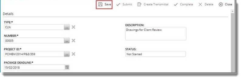 In the case of authorization packages a transmittal is released once the package is approved. You can define the transmittal details and when a transmittal is created for the package, the transmittal details window is populated with these details.