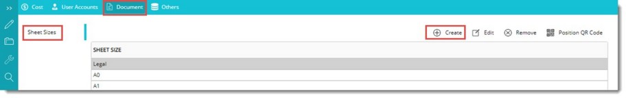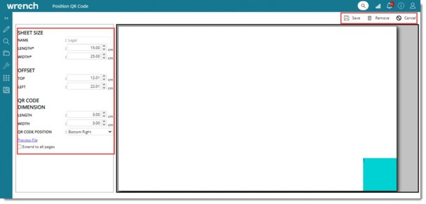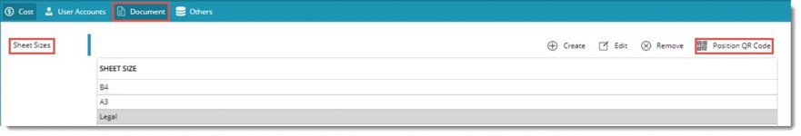 Document related setting can be configured here. Sheet size can be define for a document and position in the document where QR code is to be inserted can be defined.