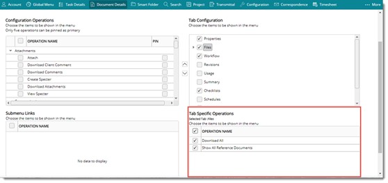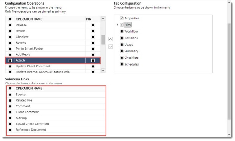- Select the check box next to the operations that are to be displayed in the sub-menu.