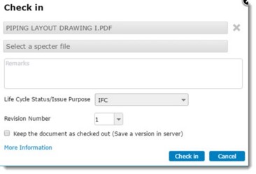NOTE: When the document is checked out for the first time after transmittal release an option to select revision number is enabled and you can select a revision number. For more information Refer Project Settings>>Allow document revision number duplication.
