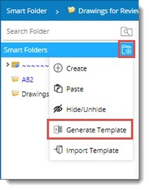 - Smart Folder menu is displayed. In the menu click Generate Template.