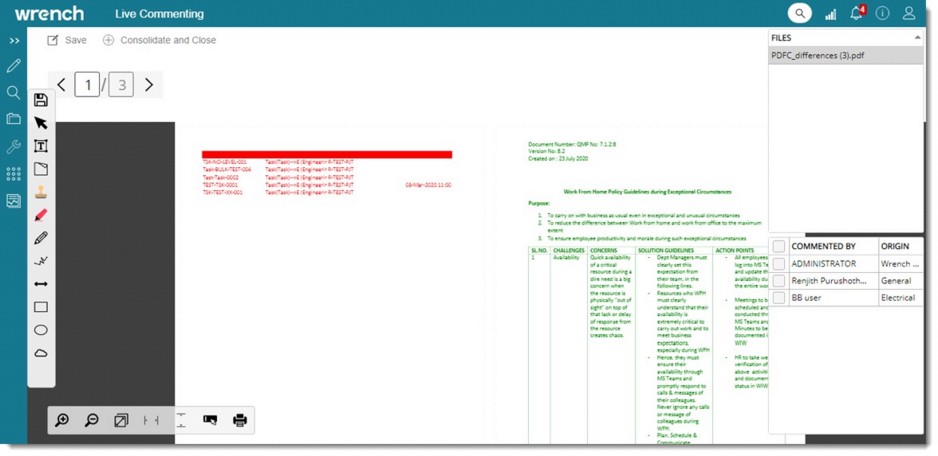Live commenting sessions can be managed using Wrench Viewer and Bluebeam. Since there are organizations that use Bluebeam application for online commenting, online commenting procedure using Bluebeam and Wrenchviewer is explained. The IDC process of commenting is done after uploading the physical file into Bluebeam cloud and opening a session for commenting by inviting the users.