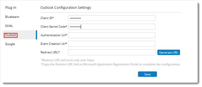 Authentication URL: URL for connecting to MS Outlook.