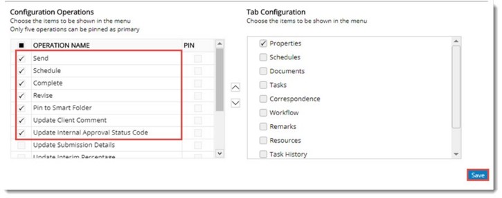 Here the administrator can configure different tabs in the task details window and different operations that have to be displayed in the menu. This can be carried out for a user or a user group, depending upon the necessity.