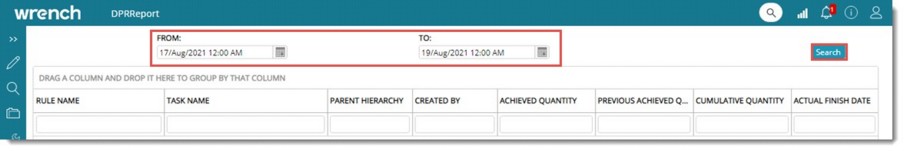 Progress details updated on a specific date or a date range can be viewed by generating a DPR report.