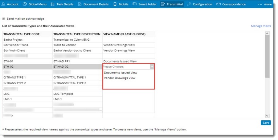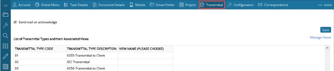 After creating a view, the view can be assigned to a transmittal type.