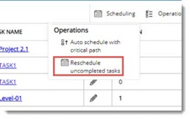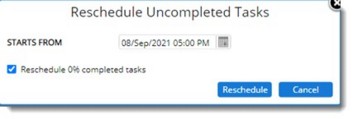 Incomplete tasks in a WBS can be rescheduled from a new date.