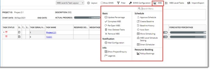 WBS Levels and Tasks can be selected and marked as Schedule type of tasks.