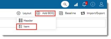 BOQ leaf level items can be created and unit rates and quantities can be specified against the Item.