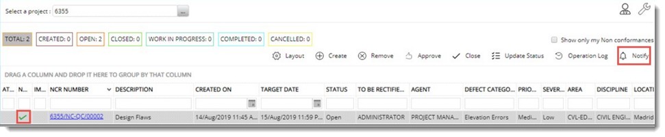 If Non-Conformances - Quality facility is opened from the Project, Non-Conformances-Quality List of the Project is displayed directly. In case Non-Conformances-Quality facility is opened from the Module options, the following window is displayed.