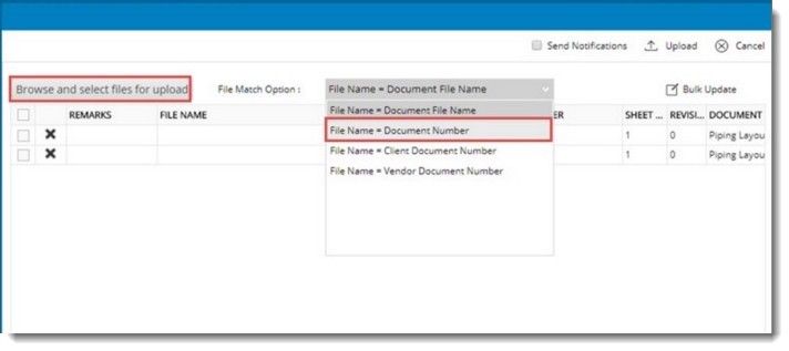 In the bulk upload window you can select a matching option. Documents will be replaced based on the matching option selected.