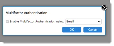 If this option is selected, in Administrative Settings window, this option is enabled here. Multi factor authentication using username, password and OTP is enabled. Multifactor options can be selected from a drop-down list. Options available are Email and Mobile App. By default, Email is selected.