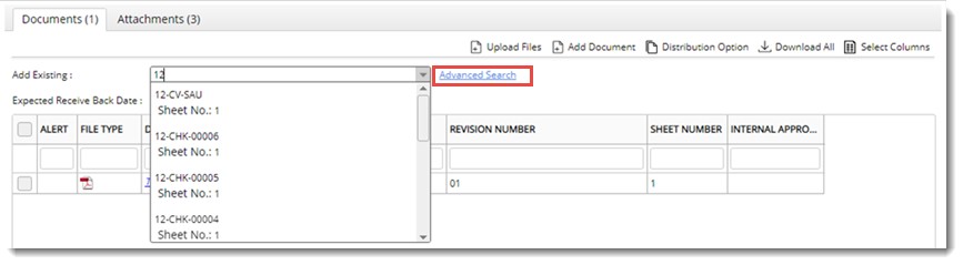 Documents are added to the transmittal. Selected documents will be displayed in the grid.