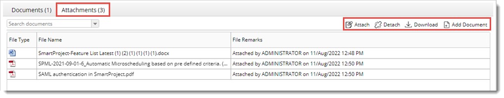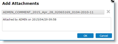 NOTE: In the File Remarks field, details of the user who attached the file and the date on which the attachment was added are displayed. This field can be edited.