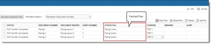 Fetched files are displayed in the grid and the status is displayed as File Transfer Completed.
