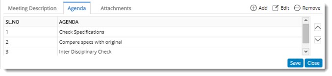 On saving the agenda, a serial number is generated automatically for the added agenda. If there are multiple agendas, serial number will be generated based on the sequence in which the agenda is created.