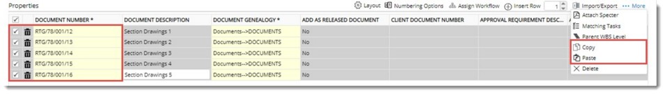 In the Import template generated from Multiple Document Addition window, a new column Parent WBS Level is available. If a property set is defined, all the WBS levels of the specified Project in property set is exported. For more information Adding a Single Document>>Parent WBS Level.
