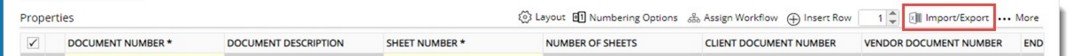 This template can be generated automatically. This MS Excel template contains the same document characteristics that are uploaded to the grid. You can update the values in the template and import the details back to Wrench. For this, options to export the document characteristics to an MS Excel file and import the updated document properties back to the system are available. In the tool strip on clicking Importing from / Exporting to MS Excel the following options are available.