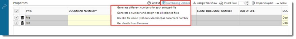 When bulk volumes of documents have to be added, an MS Excel template serves as the medium for updating document properties.The basic document properties are first exported to an MS Excel template, values for the properties are filled in and then the properties are imported.