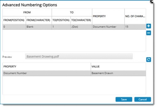 Based on the options defined, the value for the property Document Number is Basement Drawin.