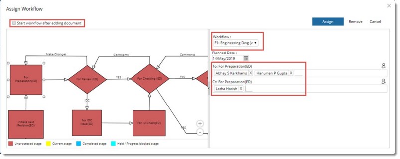 If a workflow is assigned to the selected genealogy system assigns the same workflow to the documents. However you can change the assigned workflow.
