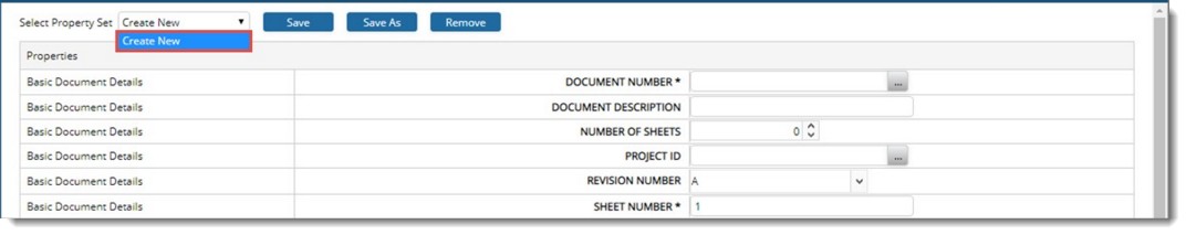 A set of document properties are defined and they are stored under a unique name. This set of pre-defined properties are called as Property Sets. You can select an existing property set or create a property set. You can create a property set, rename a property set or remove a property set.