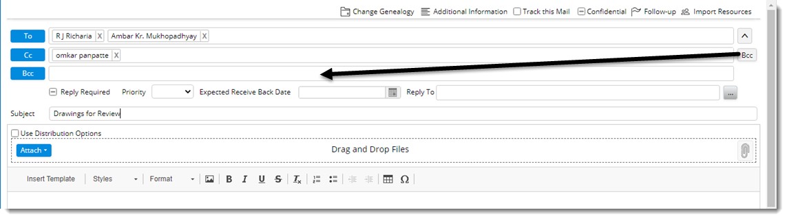 In addition to To and Cc users, Bcc users can also be added as recipients.