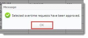 On clicking OK, request is rejected and a message, The Selected overtime requests have been rejected is displayed.