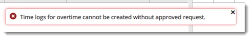 Once the overtime request is approved, user can make an Over Time entry in the time log window. If a user enters an overtime time log without any approval, a warning message is displayed.