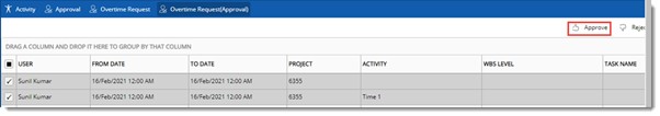 On successful submission of overtime requests, a notification is send to the corresponding approver. Submitted over time requests are approved to rejected by the approver.
