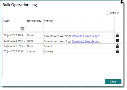 Status of the operation can be viewed from Bulk Operations Log.