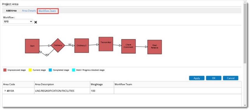 - Click the Workflow Team tab to assign a Workflow for an Area.