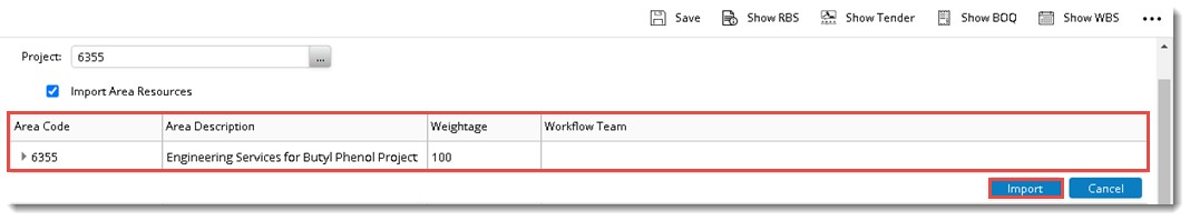 Import Area Resources: When areas are imported from a project if this option is selected, then Area Resources from the source project will be imported to the target project. While importing the Area resources from a project, and if the same resources are not available as project resources in the target Project, then such resources will not to be imported.