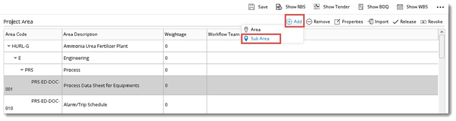 Once the areas are defined for your project, the areas can be released. We can assign weightages to areas and its sub-areas so that the progress can be rolled up to the main area and to the whole project. The areas need to be released so that they can be used in the deliverables, this is to ensure the weightages provided in the areas of same level are summed up to 100, and then only the progress of the project will be calculated correctly.