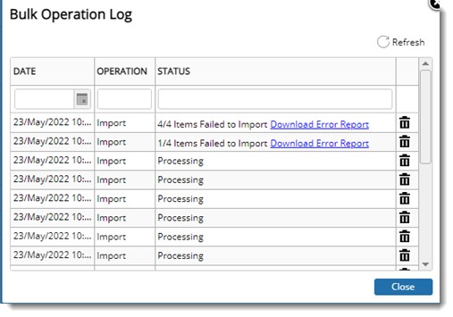 - In the Import menu click Bulk Operation Log.