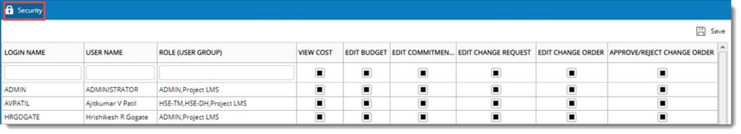 Figure: Cost Management Security Settings