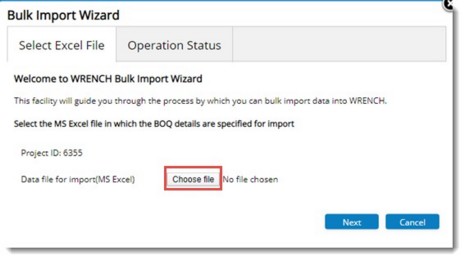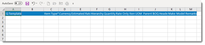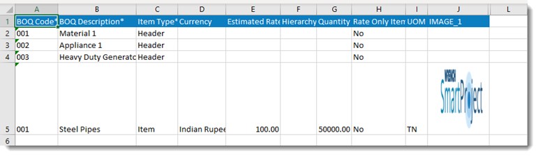 BOQ item details are entered in the MS Excel template generated and details are imported to the system.