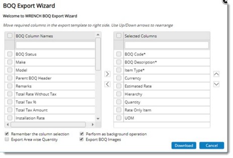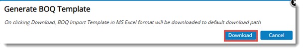 - Perform as background operation: If the checkbox next to this option is selected, the export operation will be carried out in the background. When the user clicks on Download a message, BOQ Details export operation will be done in background. You will be notified once the same has been completed is displayed.