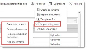 - Replace old revision of documents: Click this option to replace the old revision of documents f using the generated template. On clicking this option Bulk Import Wizard is displayed. The procedure for importing the files using the wizard is the same as before.