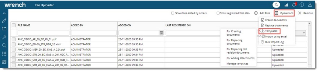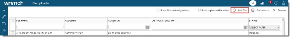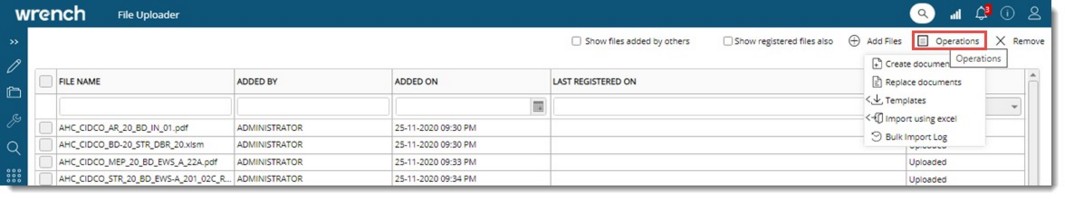 Major time consumed in the above process is for uploading the physical documents. This may take more time depending on the size of the files. To make this process easy, a facility to upload the files in bulk, independent of the bulk add function is required. Using this facility user can keep uploading documents in the background and continue working in the system at the same time. After uploading the documents can be registered in WRENCH.