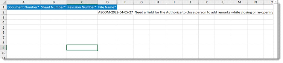For Replacing old revision documents: Using this option a template that can be used to replace old revisions of existing documents can be generated. On clicking this option, the following template is generated.