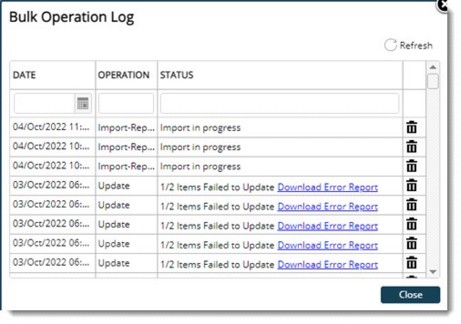 Using this option files of existing documents can be replaced. On clicking this option after selecting the documents, the Bulk Upload Document window is displayed. For more information on working with bulk document upload window refer Bulk Update of Documents.