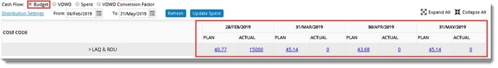 The actual money spend against a line item may be also displayed in the Budget cash flow, so that user may compare Plan with the actual.
