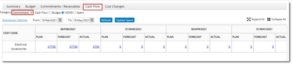 NOTE: Unlike the ‘Budget’ cash flow, the plan and forecast in this case is calculated from the commitments, not from budget.