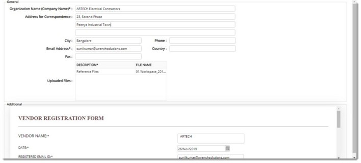 Vendor registration template submitted by the vendor is opened.