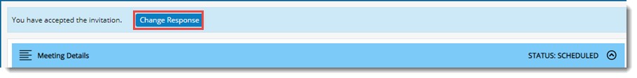 A response to a meeting can be changed. In case you have declined an invitation but later you want to accept the invitation, open the meeting and change the response.