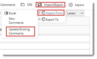 - In the pop-up menu displayed on clicking Import From, click Update Existing Comments.